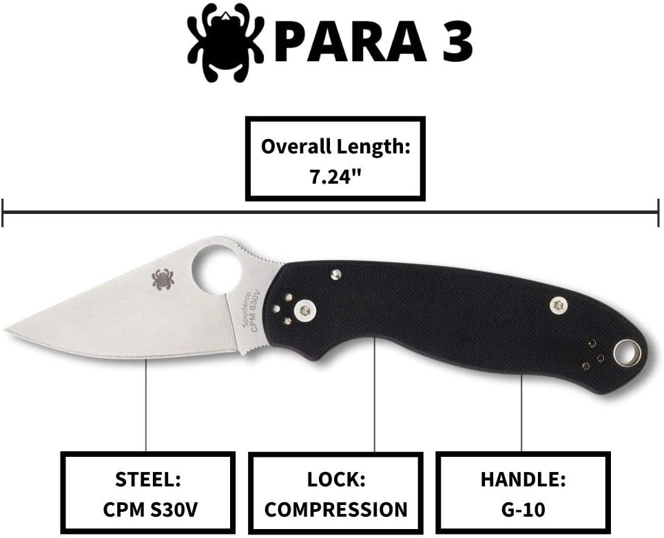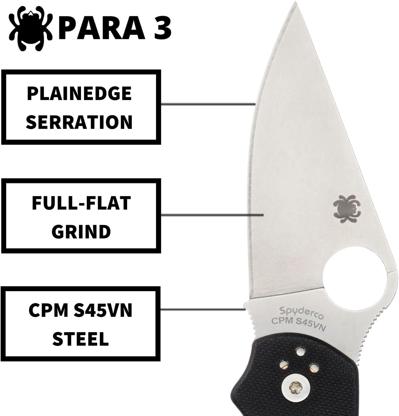 Spyderco, Para 3, 2.95" Folding Knife, CPM-S45VN, Plain, Black G10